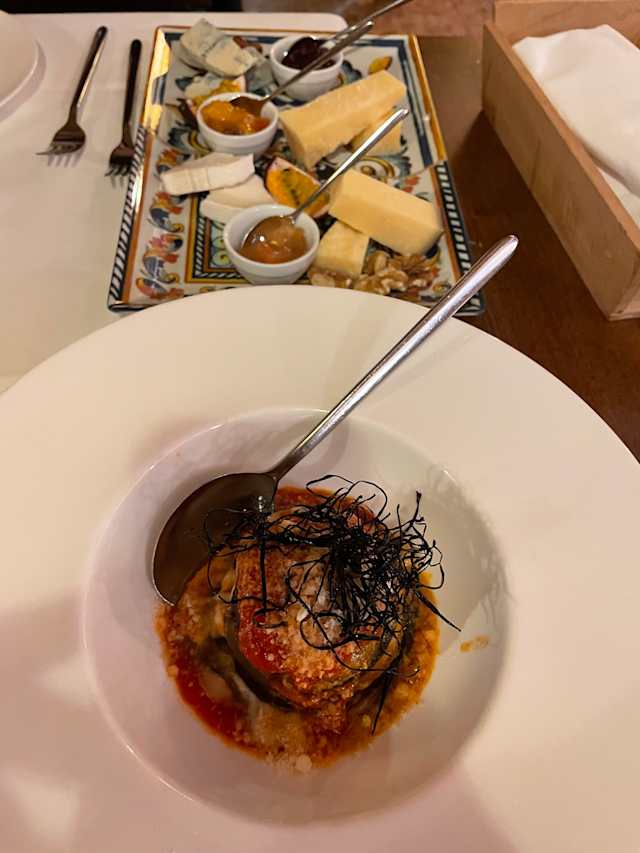 - Ovetto morbido, fonduta di parmigiano tartufata e speck croccante