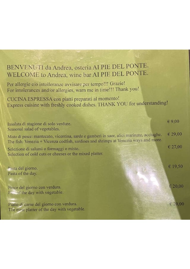 10/10Best meal our entire stay in Venice! Andrea was funny, authentic and a fantastic chef! The scallops, octopus, veal, and duck were amazing!! It was an unforgettable experience!!! Cannot thank you enough! Also, the music was on point! Thank you for your kindness!!