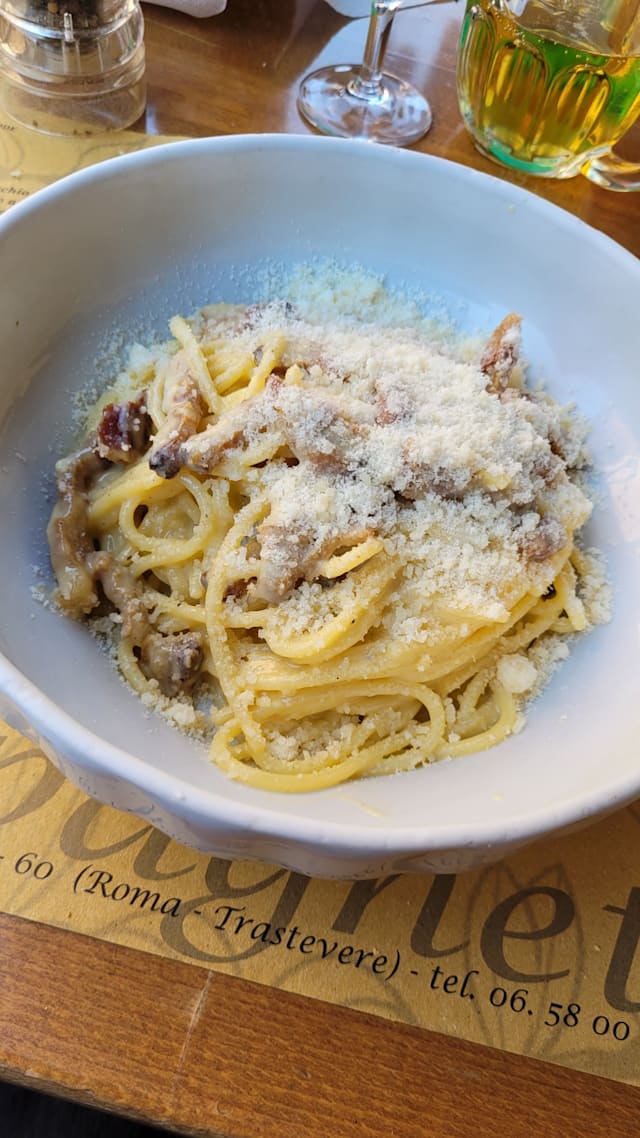 8.5/10This place has been around forever, and for a good reason- solid bistro fare, reasonable prices, in a simple atmosphere. You will find more locals here than not (Italians eat dinner late, so wait for the tourist crowd to leave sometime around 8 pm). You can count on the pastas for sure, and order the house wine and not feel cheated. Plus, Pz Sn Cosimato is a fun little local spot, surrounded by small shops and cafes.