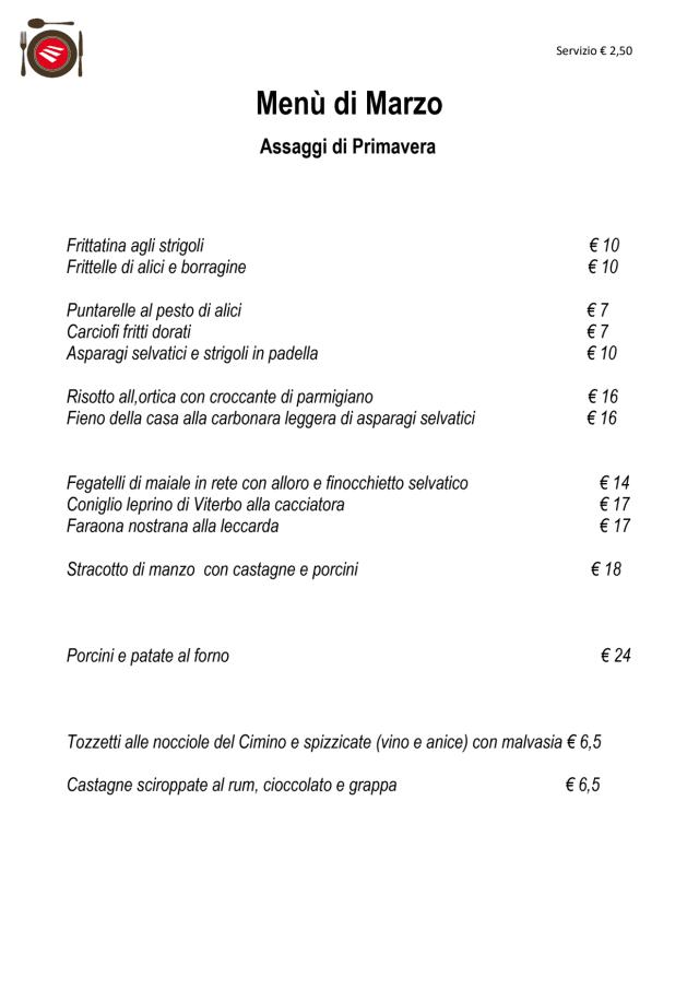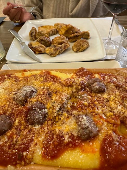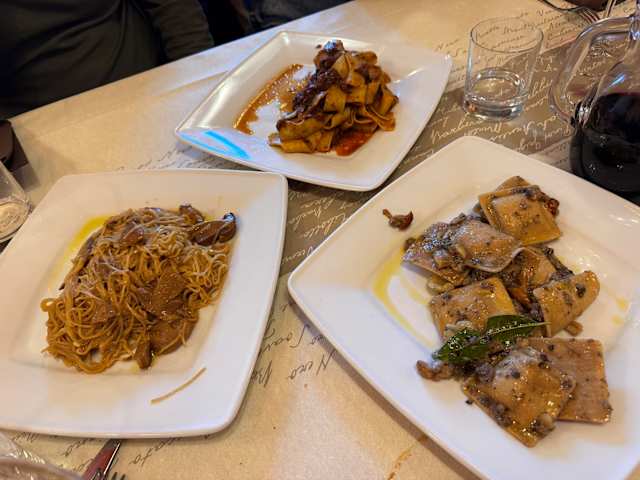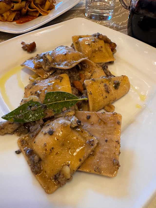 10/10First time at the Ai Tre Scalini. They were welcoming and friendly, the ravioli castagne was terrific and the rabbit cacciatore the best ever I tasted. We had the house ted wine which was also very good! We will return.