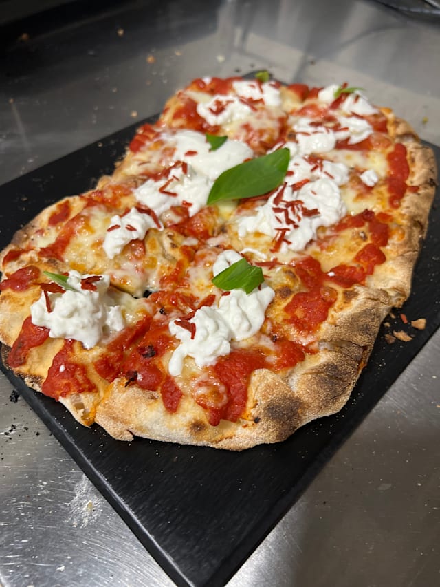 Sauce tomate, fior di latte, spianata, poivrons, nduja
