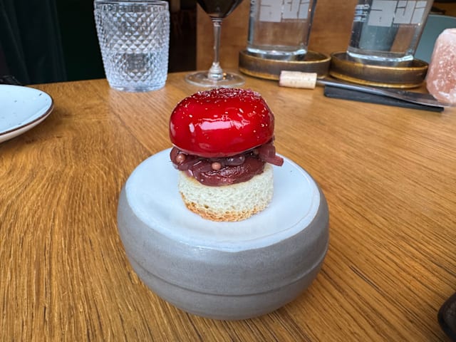9/10A real delight, an explosion of flavour. We started with some bites, I recommend the baked oysters, as well as the maize bread and for main the kalf. The dishes are small and all prepared finely with details. We could not resist the beautiful dessert, our fav, the one with beetroot. Delicious. As a constructive comment: (we told them) Offering Napoleon sweet (lidl or Aldi) with the bill doesnt suit at all here. Its room for improvement. It seemed that our comment wasn't highly appreciated, a pity though! Anyway, we had a perfect evening in nice atmosphere.