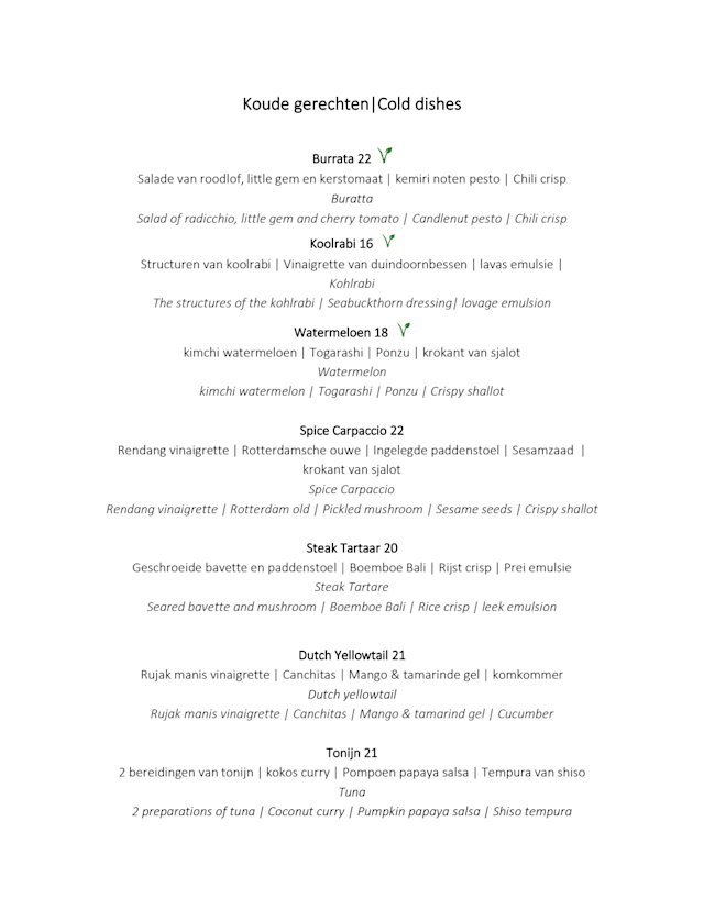 9.5/10The food was excellent althoug tthe portions are not very big. When receiving the wine menu it is not mentioned that the wines per glass also come by bottle which are a bit better priced. The service was excellent. The dishes were explained in detail and they were happy to give recommendations.
