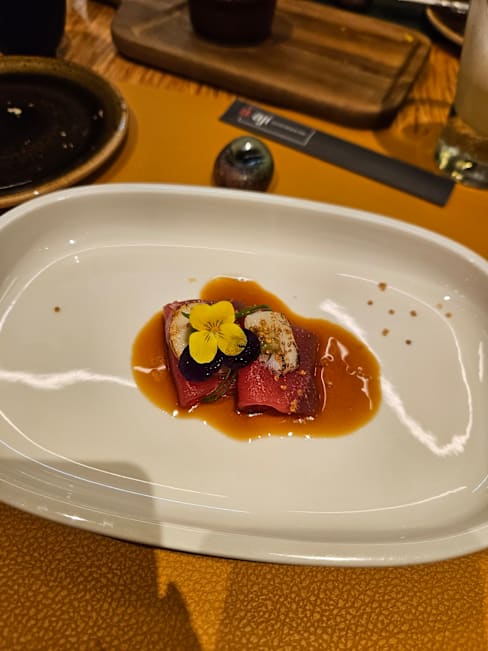 6.5/10The food is tasty and good quality but I did expect a better menu for Michelin. The service was good, but the ambiance was strange. The colors and lighting weren’t serene and I had a ceiling drip right next to my seat the whole time.