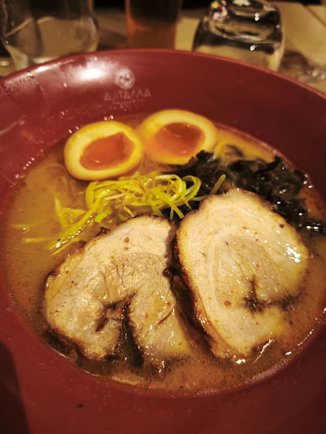 7.5/10Tried the ramen and different starters here a few times. All starters are good and well plates, however the ramen falls a bit short of their statement of being the same quality as in Japan. The broth, despite which ramen you choose, lacks flavour, it is generally bland, which affects the overall taste. The eggs are cold, as if they were just removed from the fridge, while the pork meat slices are also not very flavourful. It’s not a bad ramen, but it just misses that special flavour to turn it into a good quality one. For the price tag, it is a bit disappointing.