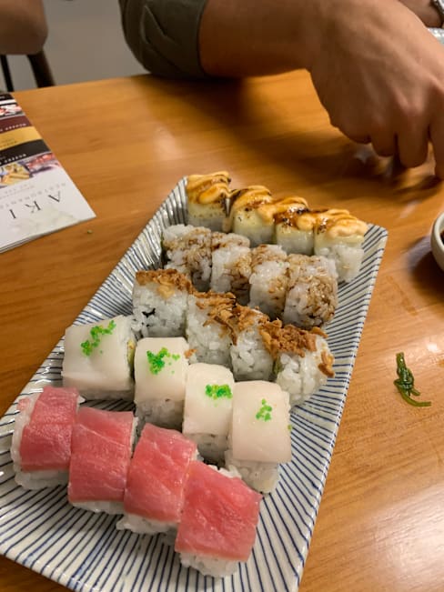 7.5/10The sushi was fine, and the prices were reasonable, but the food was far from great. Most of the sushi had lots of rice and just a small amount of fish. If you’re craving sushi it does the job, but don’t expect anything more. The menu is quite extensive, but the different options for fish and ingredients in the sushi were relatively limited.