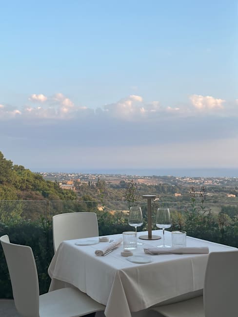 10/10The food was completely exquisite. Particularly noteworthy was the chef’s selection of raw seafood, which left me almost breathless. The view over the valley, with the Concordia temple and Heracles both clearly visible as the shadows lengthened and they were lot up, was uniquely remarkable. And - notwithstanding some earlier reviews - I found the quality and kindness of all the staff to be outstanding.