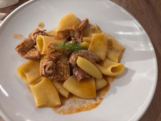 - Tagliolino ruvido con sugo di scalogno romagnolo e bruciatini di pancetta croccante