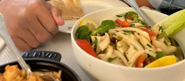 10/10The food was delicious. We ordered lots of different mezze to share. It was all lovely. Especially the Fattoush. The service was really good. Staff were friendly, polite and food was all served quickly. The restaurant itself had a lovely terrace with plenty of space. We will definitely go there again.