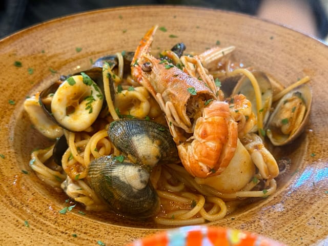 8.5/10The tomato seafood pasta is perfect But the ink pasta is bad , don’t try The service was great tho