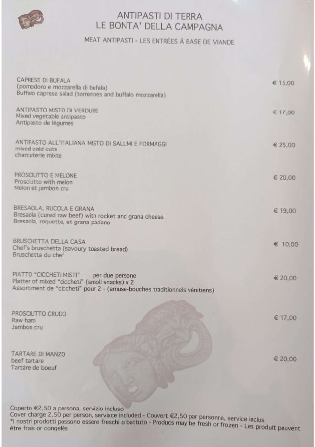 10/10Alex and his crew looked after us well, the food was very good and served as requsted, both of us had steak. If in Venice again would go here again.