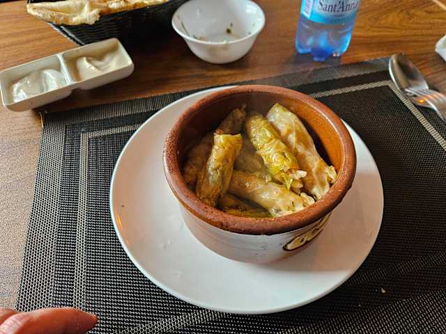 - (Foglie d'uva ripiene di riso, prezzemolo, salsa di pomodoro)