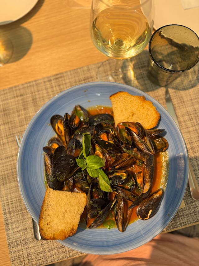 Very good fish recipes in a modern ambience. Also good pizzas with a wide choice of toppings. Service rather quick and very gentle waiters and waitresses. We appreciated the table for two overlooking the port and the sunset.