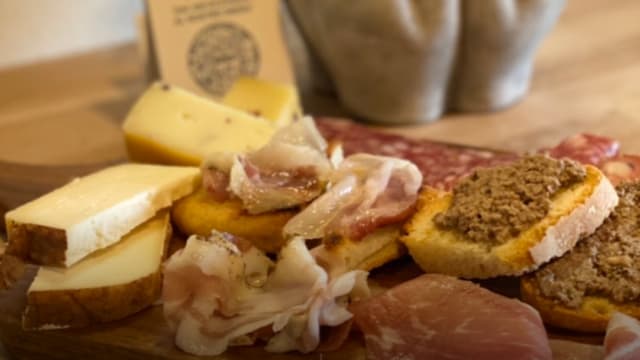 Selezione di salumi di maiale tipici toscani - selezione di formaggi di pecora del caseificio podere paterno - carciofini sottolio e schiaccia crogiata