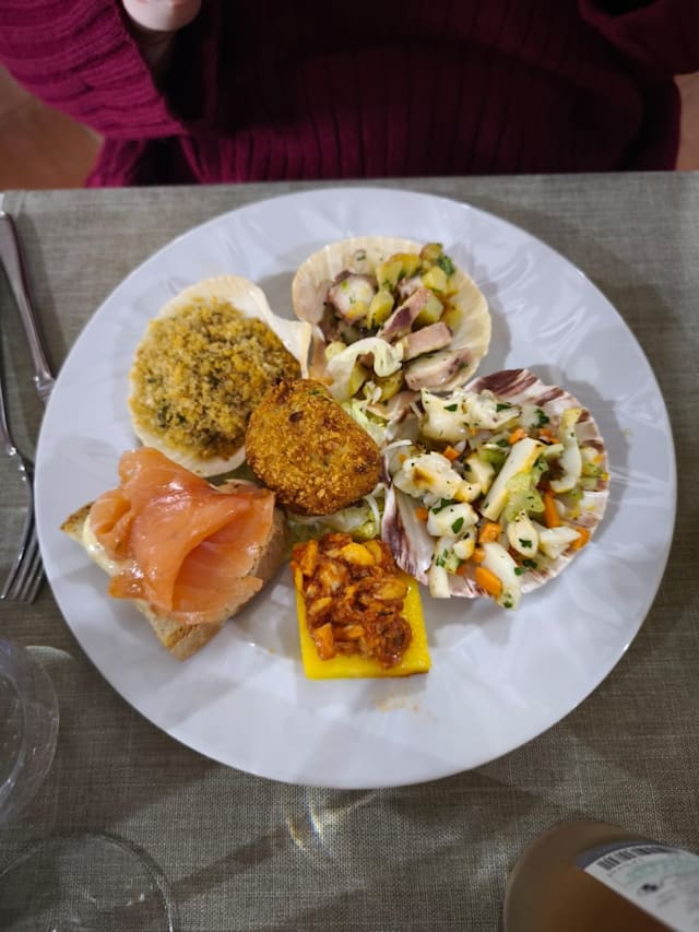 7.5/10Great grigliata mista. Service was quick and efficient. I suggest to change the lightening in the main room to make it warmer and more cozy