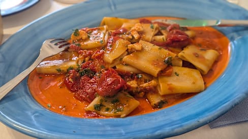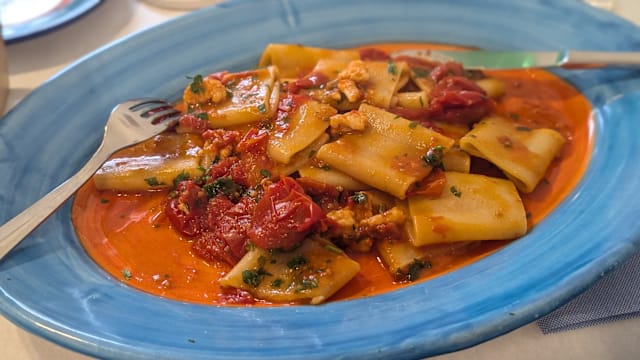 5.5/10We ordered 4 dishes, 3 of which came out average and one below average. Octopus was nicely done, but broccoli was bitter to the extent of non-edible. Stuffed calamari with courgettes was underwhelming, and pasta with seafood was formula 44 in red souce. Fried calamaris - well you don’t have much there to go wrong with. Service was OK. Overall, not worth it - especially when you go all the way to Amalfi for one lunch. I would have chosen different.