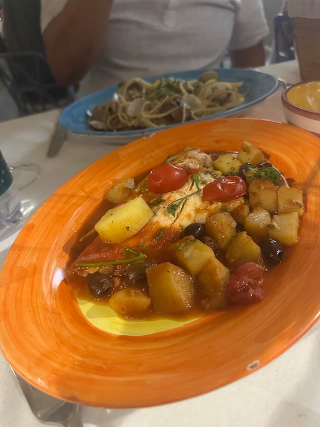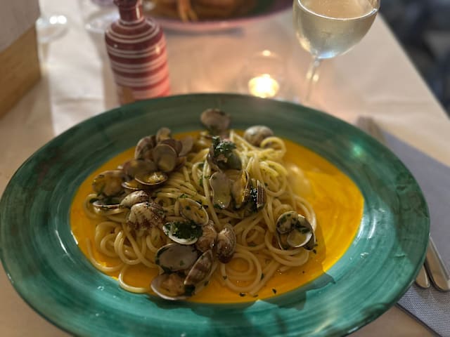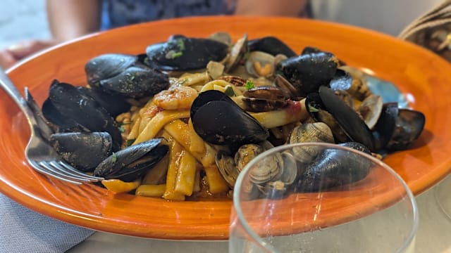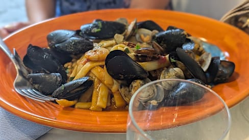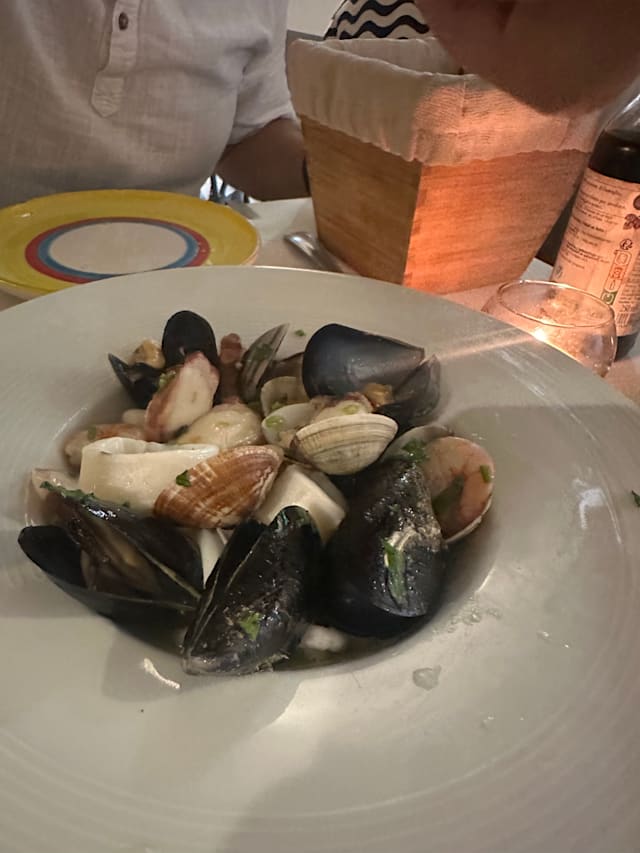 9/10The timing of the dishes was perfect, and the ones I had my eye on—the vongole, seafood salad, calamari, and acqua pazza—were all absolutely delicious.