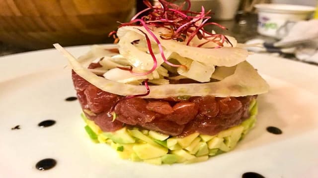 7/10Food was ok. My wife had the Sea Bass special which is priced by weight , maybe our fault but we weren’t advised of the of an average price and hers came to 49 euro. . I had the tuna and again I assumed it would be tuna steak when asked how I would like it cooked, but it was Tuna belly which I find fatty. Starters were nice. And the ambience lovely. Lesson learned for us check before you order anything by weight.