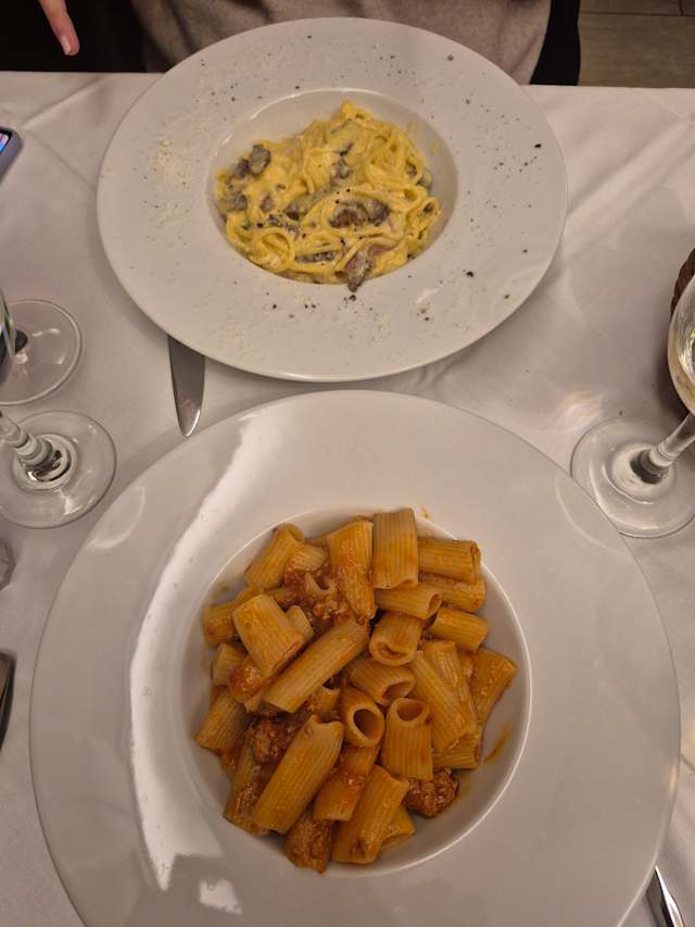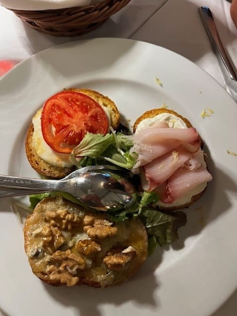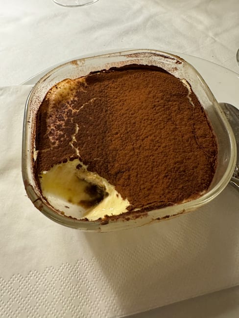 6/10I think a restaurant service charge is ridiculous despite a low amount - the principle of the charge is bad. Veal was dry as were the potatoes. Appetizer bruschetta was very good and the tiramisu was delicious. Very close to our air bnb but I would not recommend it to any one.