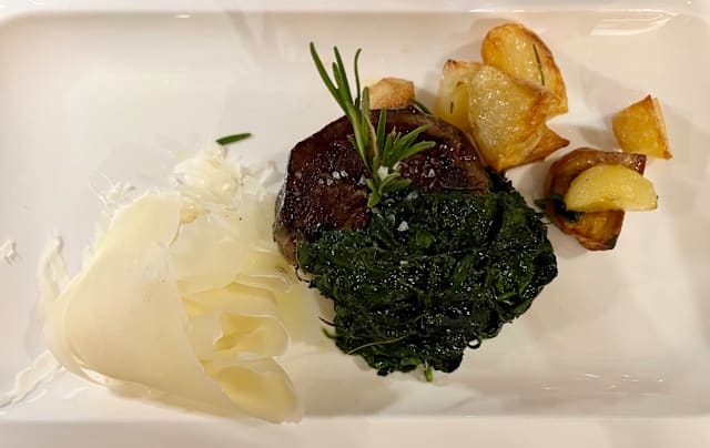 9/10Loved the filet mignon, big portions. Very good wine list. Super service. Nice ambiance with white linen tablecloths. Unfortunately the is so bucco veal shanks were dry and risotto was tasteless.