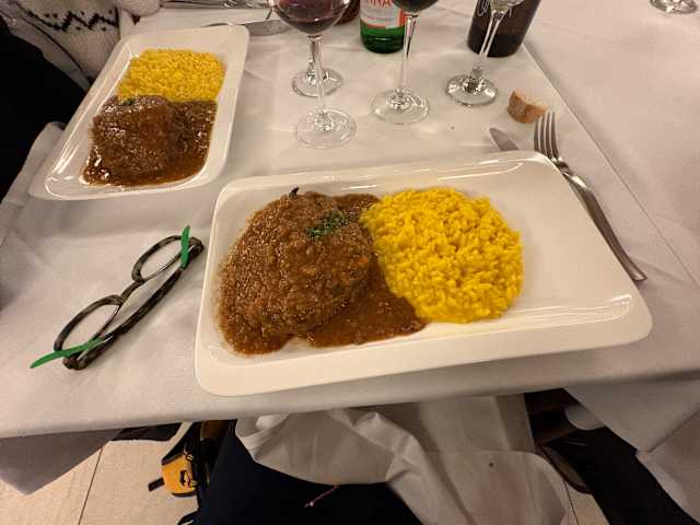 - Ossobuco di vitello in gremolada accompagnato da risotto alla milanese