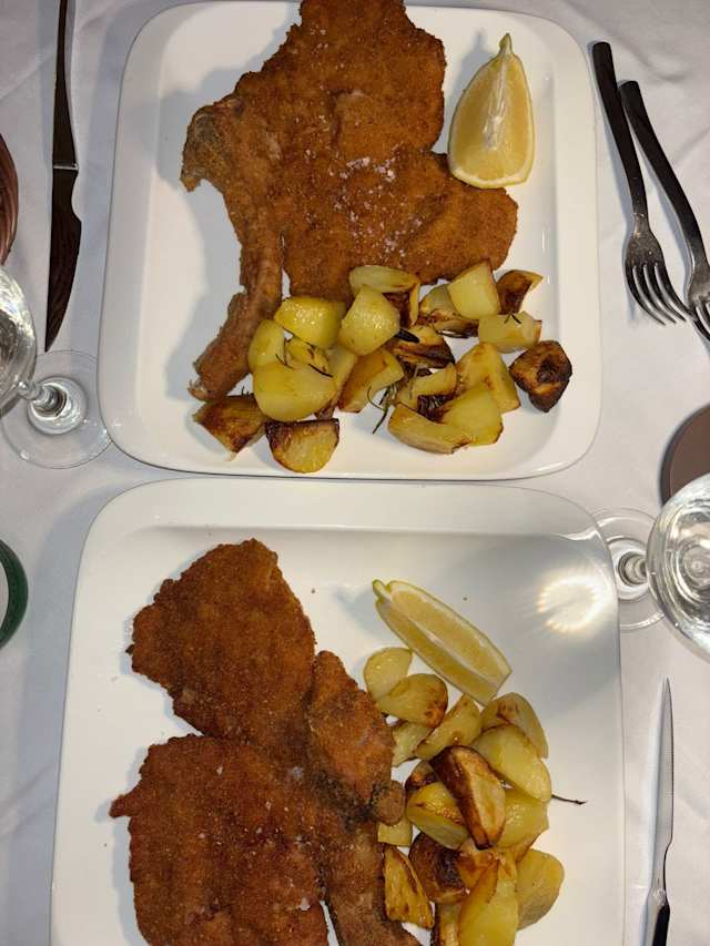 - Cotoletta di vitello alla milanese accompagnato da risotto alla milanese