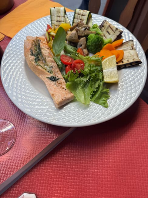 10/10+1Lasagna , ravioli and salmon ordered with salads . Tiramisu so good. Owner gave us free wine and limoncello. Very authentic Italian food. A must visit !
