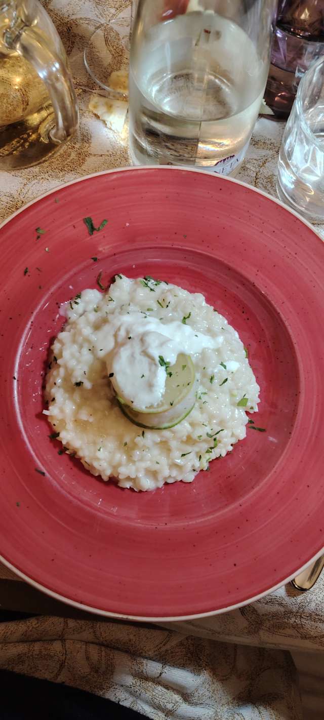 - Risotto al radicchio rosso, vino rosso bresciano e scaglie di monte veronese
