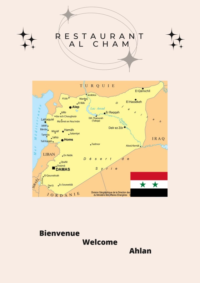 Restaurant traditionnel familial libanais & syrien. Al Cham vous propose des plats typiques avec des produits frais et entièrement fait maison. Nos viandes sont Halal et nos menus sont variés, il y a également des menus végétariens
