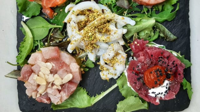 Tonno - salmone - pesce spada - baccalà - stracciatella - crema di avocado