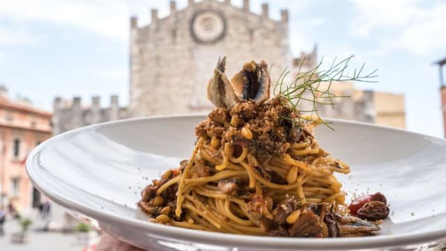 10/10Amazing food with one of the best views of Taormina’s Duomo. Spectacular service!
