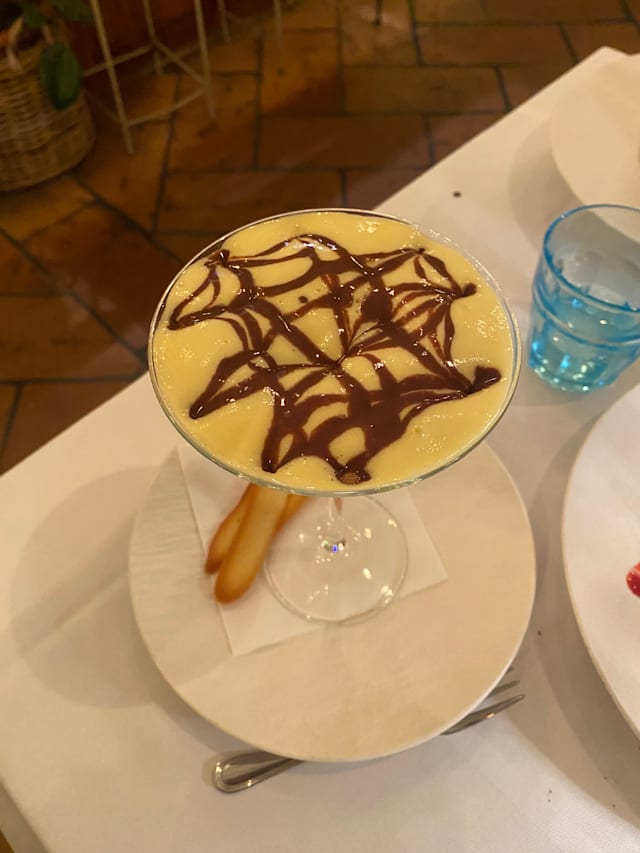 10/10Everything about our meal was perfect. The outside garden is a beautiful setting. We had zucchini flowers stuffed with codfish which were perfectly fried. Our two main courses were excellent. The dessert a huge profiterole was so good too. Excellent service as well. I live in NY but would definitely be back otherwise.