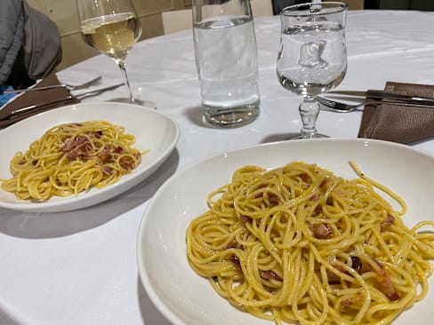 10/10The restaurant was so nice. The ambiance was wonderful. The complimentary bruschetta was good. Our server mentioned he was new but he did so good. 10/10 customer service. Amazing carbonara. Great price and quick service as well.