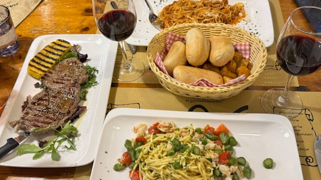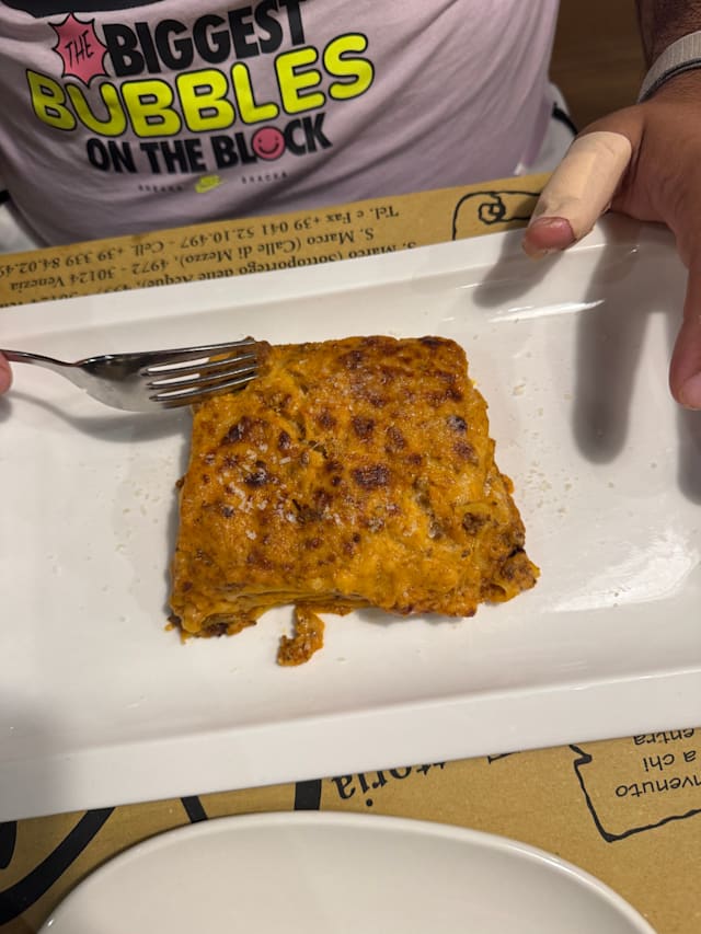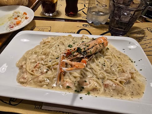 8/10Several dishes ordered, with the Lasagne Bolognese being very good, but tables unanimous the best dish was Short pasta with bacon and arugula. As other reviews state, they bring you one or more things you didn't order, but beware that they also try to include something extra on the bill too. We did not order an appetizer but it was included on the bill. Quite the hassle dealing with that as when questioned the then referred to the free dessert that was not ordered, but they also brought that was not on the bill. Go with the expectations to get something not ordered included, but also possibly having something on the bill you didn't order.
