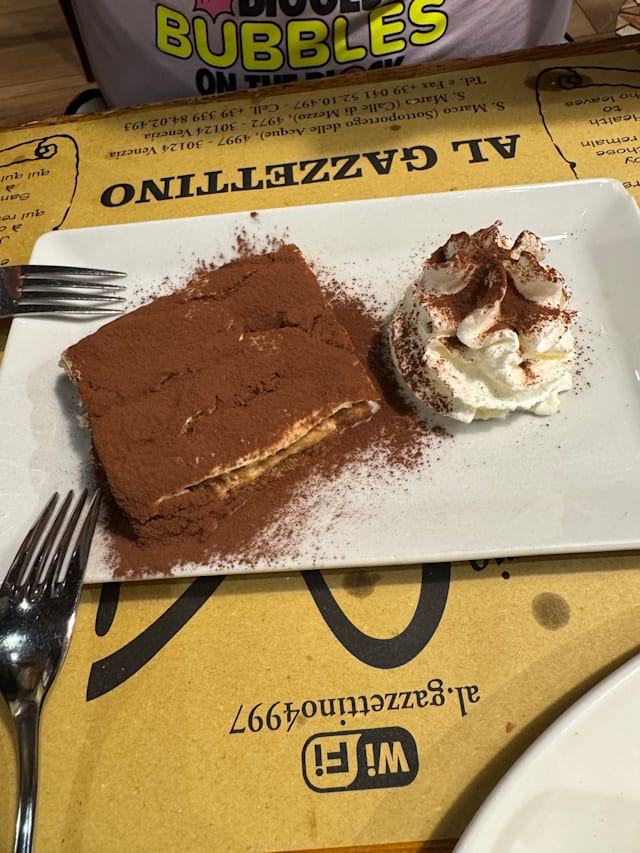 2/10If there were fewer stars to give, I would. I had dined here years back and had such an amazing experience that I booked to come again with my family. Unfortunately, the experience was terrible. We felt pressured to give our order within minutes of sitting down. We ordered an appetizer salad for the table but it arrived after our main dishes. The waiter handed me my plate at an angle and looked at me with an annoyed look when I didn't grab it the first time. He definitely had enough space to place it in front of me. We were not offered a wine menu or a dessert menu and were rather encouraged to just finish and leave. When the check came (without being asked for it) the water had the audacity to mention that tips were not included. It was such an awful experience on one of our last days in Venice. I definitely would not return to this restaurant.