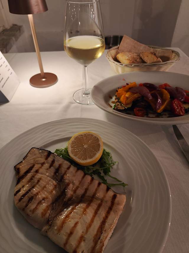 8/10The restaurant was easy to find and was a typical sicilian establishment, offering a good selection of classics, pastas and seafood. Service was efficient and pleasant, my swordfish pasta was lovely, however my white fish in lemon and caper sauce was quite heavily over-seasoned and very salty. The fish cookery was still nice and it wasn’t entirely unpleasant. The house white wine was perfectly pleasant and was an overall nice experience.