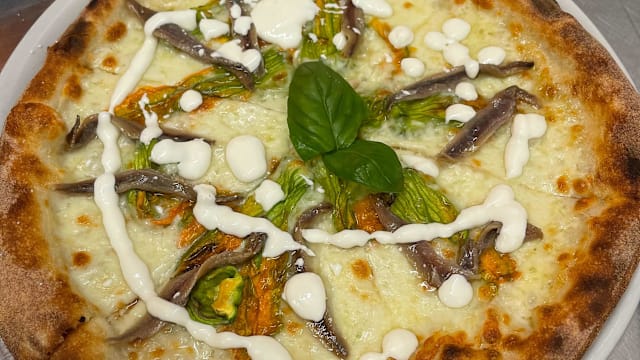 Mozzarella, pomodoro, salsiccia, porcini e olio tartufato