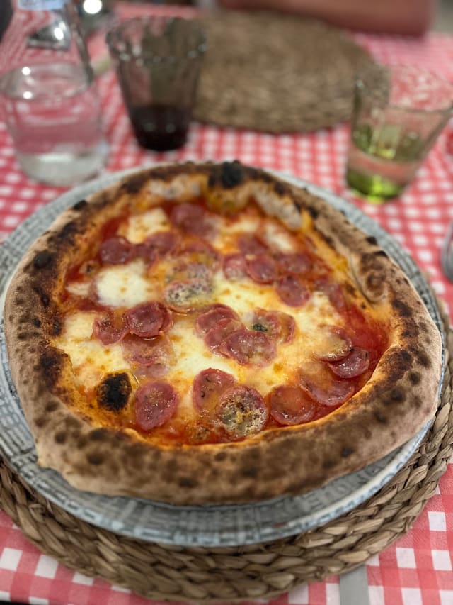 Pomodoro, mozzarella fior di latte e salame piccante