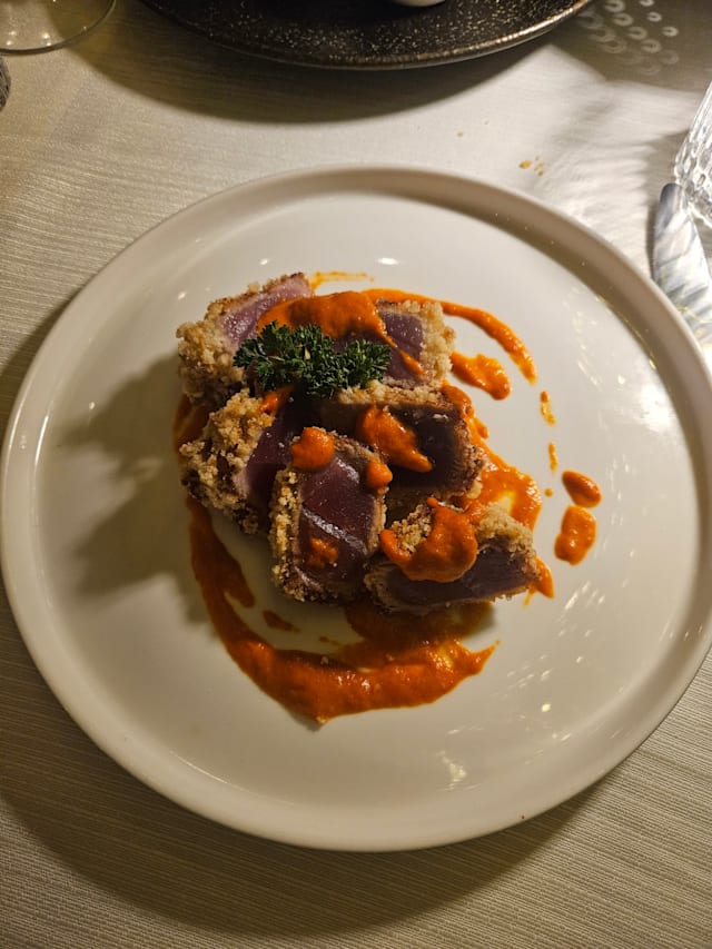 10/10+4Best way to end our trip to Italy. We had chosen this restaurant, since it was near our hotel in Rho. It was our last day in Italy, and it was also coincidentally my sister’s birthday. We were assisted by our server Valerio throughout the night, and he made sure our dining experience was incredible. He recommended dishes that paired well together, and he engaged us in conversation that kept the entire restaurant lively and memorable. The food was incredible, the price is great value for money, and the service is top-notch. Will definitely recommend to anyone in the area. For anyone who loves seafood, especially shellfish, you must try their lobster pasta or crab pasta. The flavors are incredibly rich. Probably the best seafood pasta I’ve ever had. Valerio mentioned that they change the menu every few months, so all the more reason to keep coming back! Also very convenient to dine in this restaurant, since there is a lot of free parking available along the street. Will definitely be back to try their other dishes!