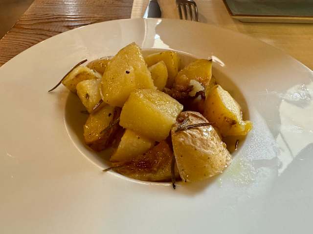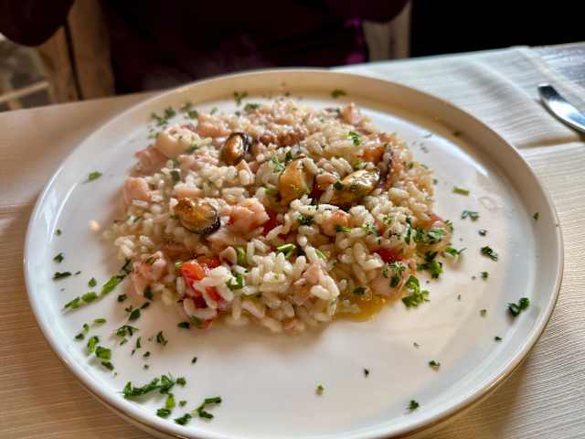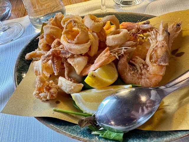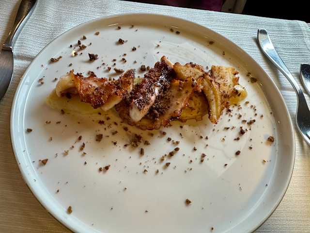 - Julienne di calamaro croccante con funghi porcini trifolati e colatura di parmigiano