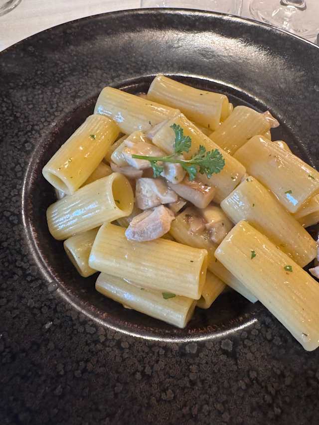 - Calamarata con calameretti sfumati al vino bianco e pomodorini confit