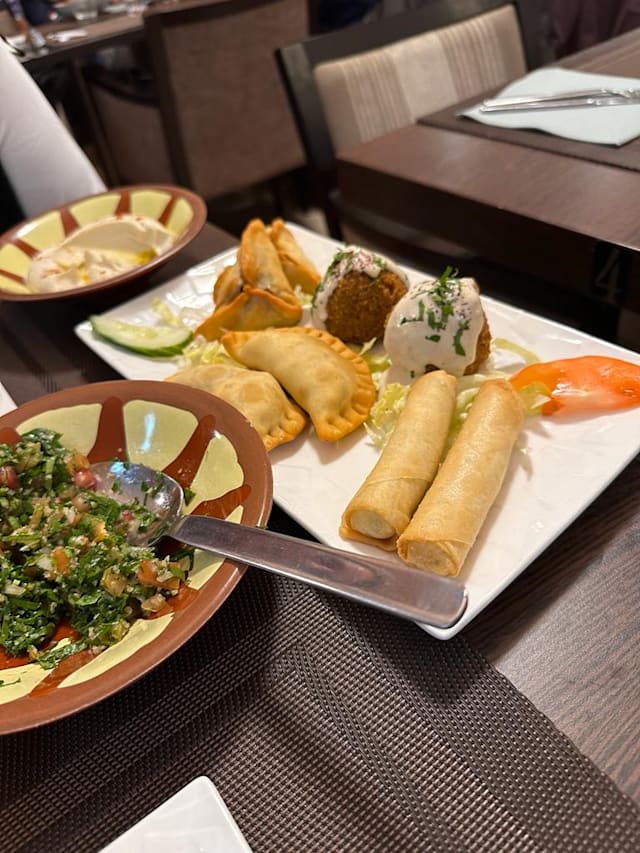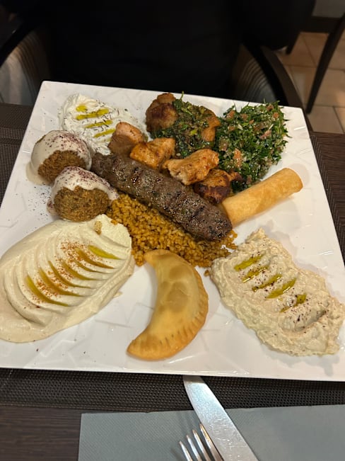 9.5/10A very warm welcome from the chef followed by a wonderfully fresh and tasty meal made our evening ! The vegetarian plate was delicious and the wine & rose syrup cocktail was a pleasant surprise. We highly recommend this Lebanese eatery in the student district "Esplanade".