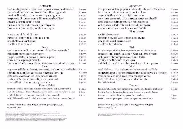 It was a quiet Monday early evening in Milan. We enjoyed the first sitting at 6.30pm en route to Teatro alla Scalla. The service was attentive and very pleasant and the menu while short was very adequate. We enjoyed a sea bass for 2 in salt. And prior had some very good home made pasta. A little tip : when sea bass cooked in salt is ordered it is good to show the fish in advance of cooking and then after roasting cracking the salt pile off to reveal the steaming fish. It’s a small addition but helps with the experience ! All told the meal was very good.