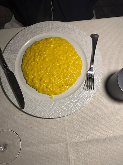 9.5/10The Risotto here was the best I've had in Italy. All the dishes turned out well, and we had nothing to complain about. Portions seemed rather small by Italian standards. We had a table of 12 and the bill worked up to $1,350 Euros thereabouts. 2 bottles of Red Wine and 1 bottle of White wine which were around 80 Euros for the red and 50 Euros for the white. All were decent wine. The setting is definitely romantic with a quite cosy atmosphere, and not a rowdy place and surrounding area nice and quiet compared to the rest of Milan. So a good place for a respite from all the bustle around the Duomo