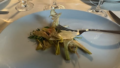 6/10Despite (or perhaps because) the restaurant was empty, the welcome and service was indifferent and mildly condescending. While the ambiance was elegant and tables well separated, the inexpensive silverware and casual paper menu were discordant notes. Bread arrived without request; both focaccia and bread were toasted and old. An expensive aged steak was flavorful but tough and a salad was a charmless heap. This is not a gourmet experience, leaving the only bright note the sounds of “Groovin” by the Loving Spoonful from the background music.
