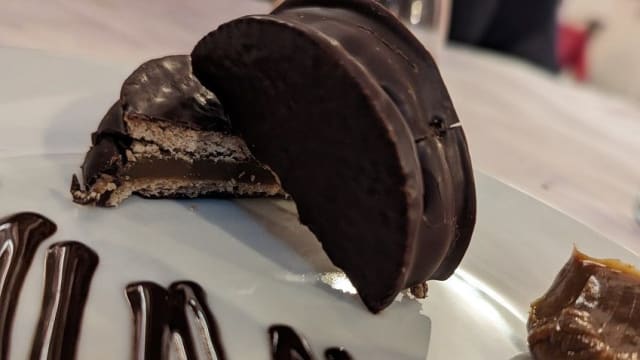 Biscotti concavi ripieni con dulce de leche ricoperti di cioccolato