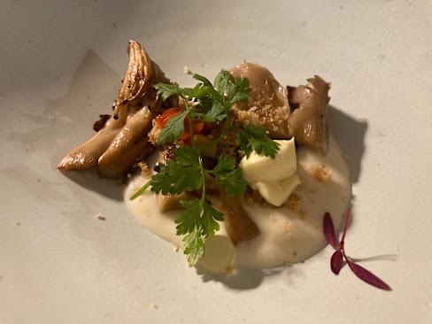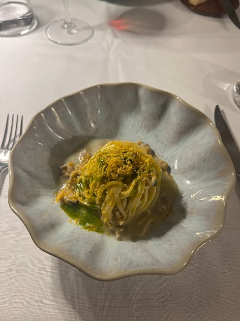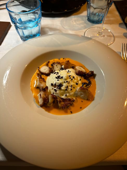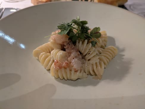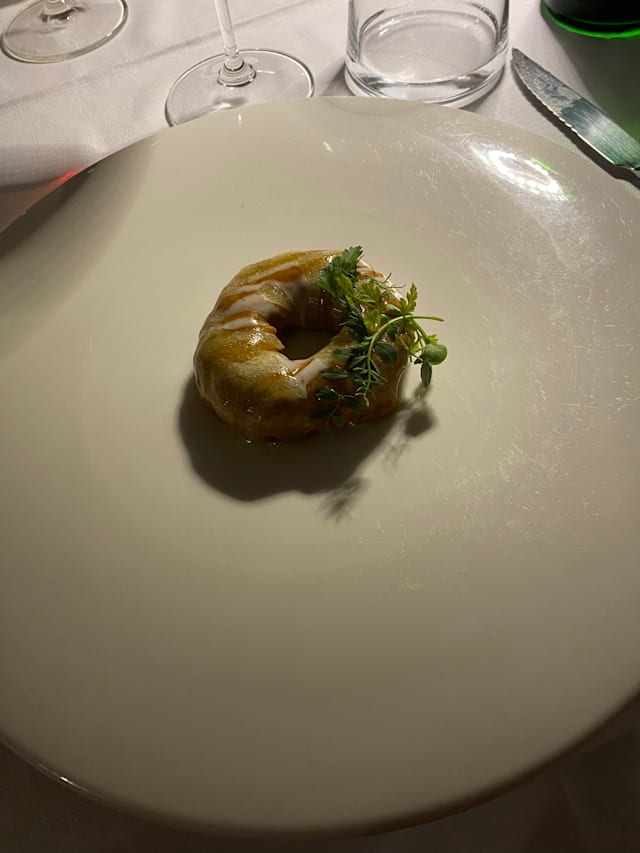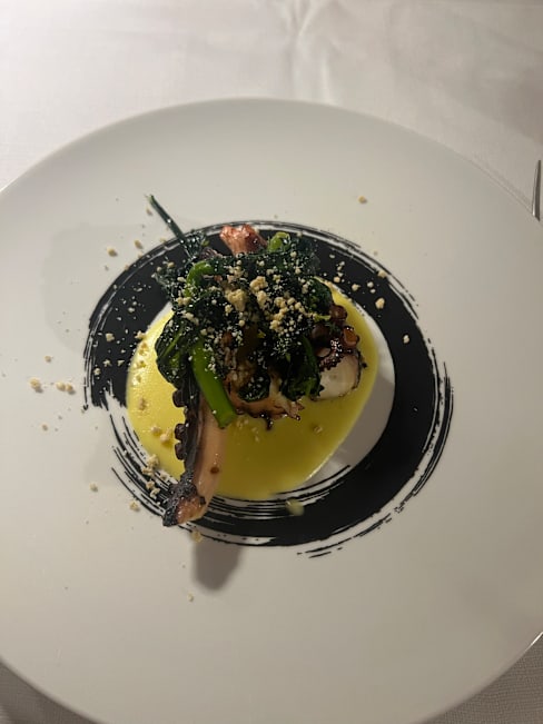 7/10Quiet and elegant space for our party of 4 to dine in. Promptly seated when we arrived with our reservation. The pasta and clams dish that I ordered to start needed more flavour but my husband’s gnocchi dish was very flavourful. The grilled octopus dish was very well done, however the turbot fish dish that was served that evening was prepared as a “fish cake ring” that surprised our table and wasn’t quite explained that well. The servers seemed to be quite curt and abrupt with us and we it made us feel slightly like we were inconveniencing them. Overall felt the food was inconsistent for each dish (either great or not really) and experience was average.