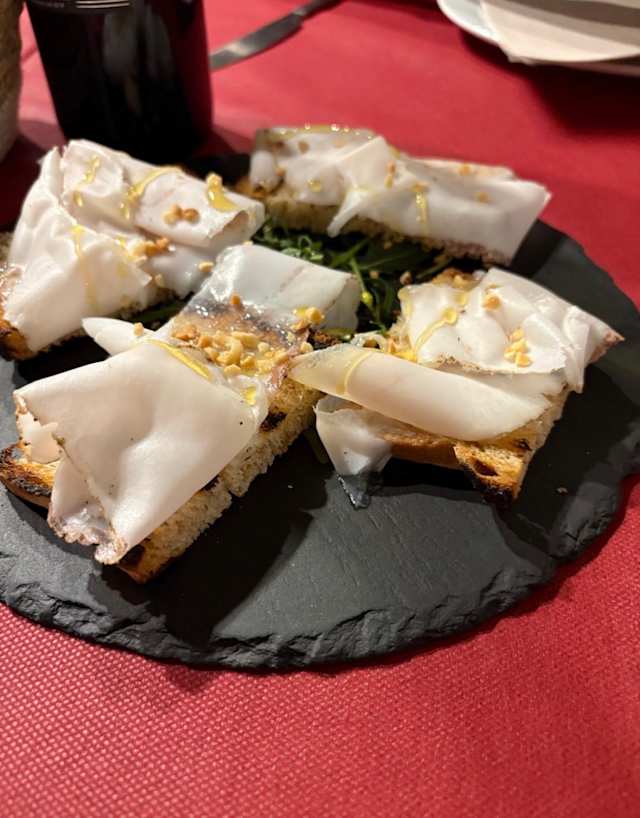 - Bruschetta al lardo di colonnata, miele e nocciole