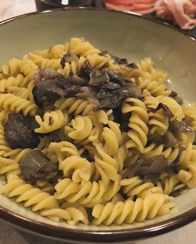 pasta fresca all'uovo con ripieno di chianina e funghi cardoncelli