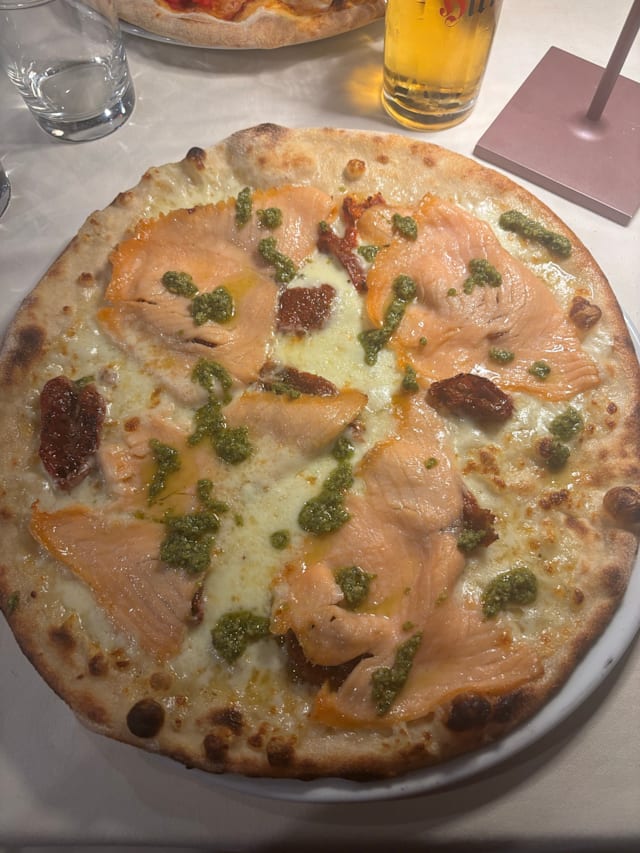 Pomodoro, fior di latte, cipolla, Gorgonzola, prezzemolo, aglio, salamino